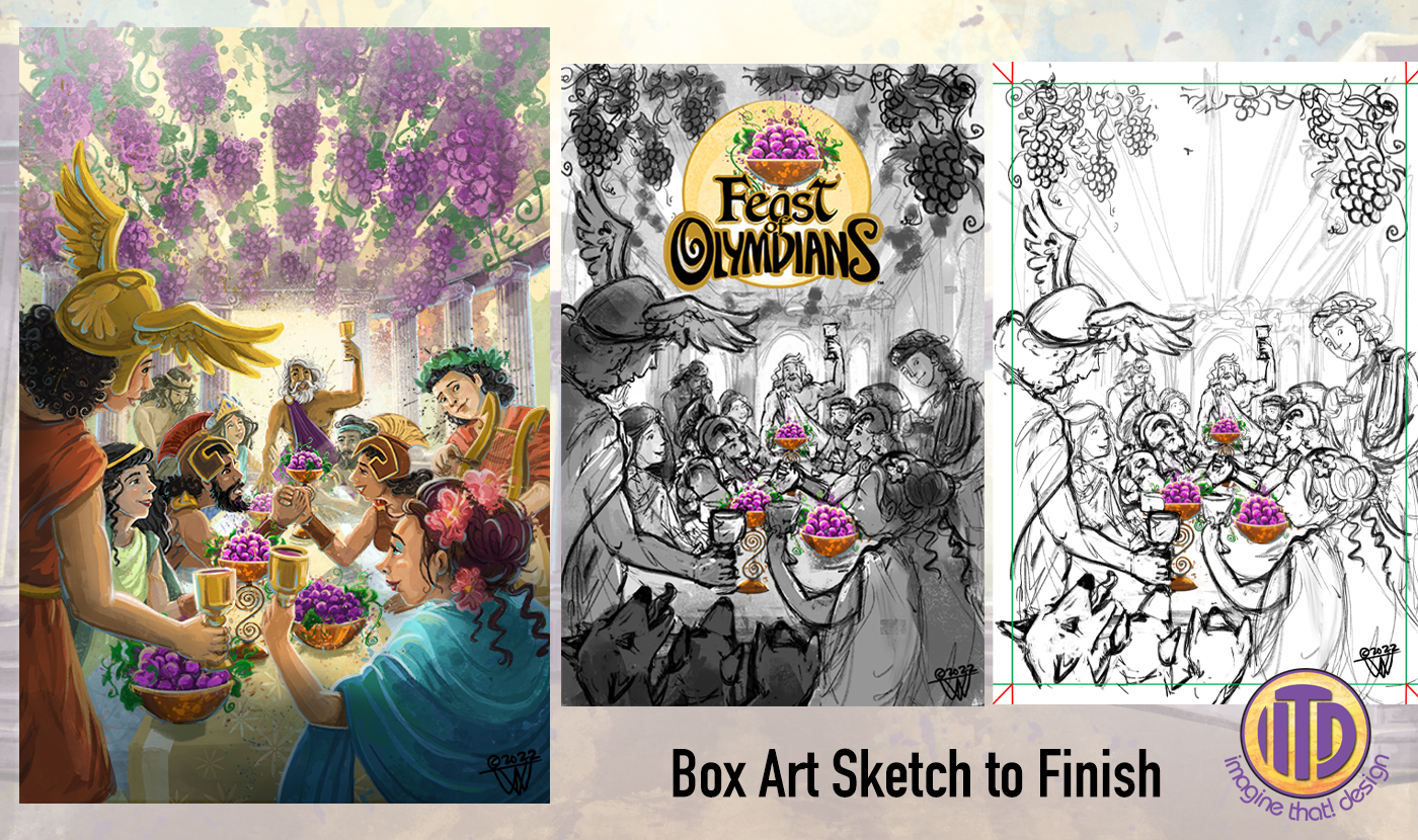 A card drafting game with gods, lesser gods, creatures and items. Who will come to your feast?